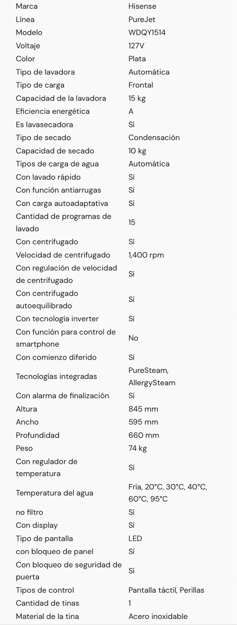 La lavasecadora PureJet está diseñada para hacer frente incluso a la ropa más exigente, con su tambor de 15 kg de capacidad, está lista para cuidar la ropa de toda tu familia. Ofrece la función de lavado y secado, gracias a sus tecnologías Pure Steam y Allergy Steam, garantizando que tu ropa quede impecable, seca, sin alérgenos y sin arrugas, inmediatamente después de terminar el ciclo de lavado.